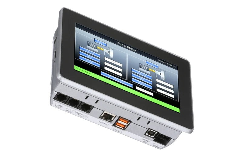 Con un servidor web integrado, los HMI Graphite permiten a los usuarios monitorizar y controlar su aplicación mediante PC, tabletas o teléfonos inteligentes. Los mensajes de texto SMS y las alertas por correo electrónico alertan con antelación sobre problemas en el proceso, lo que ayuda a evitar costosos tiempos de inactividad. Además, su conversor de protocolos integrado permite a los programadores seleccionar 13 o más protocolos simultáneos de una lista de más de 250 para integrar a la perfección dispositivos dispares como PLC, variadores, lectores de códigos de barras y medidores de panel.