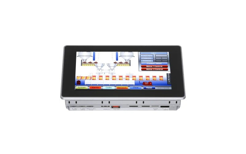 Con un servidor web integrado, los HMI Graphite permiten a los usuarios monitorizar y controlar su aplicación mediante PC, tabletas o teléfonos inteligentes. Los mensajes de texto SMS y las alertas por correo electrónico alertan con antelación sobre problemas en el proceso, lo que ayuda a evitar costosos tiempos de inactividad. Además, su conversor de protocolos integrado permite a los programadores seleccionar 13 o más protocolos simultáneos de una lista de más de 250 para integrar a la perfección dispositivos dispares como PLC, variadores, lectores de códigos de barras y medidores de panel.