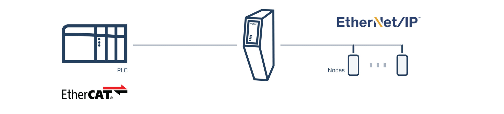 Un convertidor de protocolo que conecta dispositivos EtherNet/IP a sistemas de control EtherCAT.