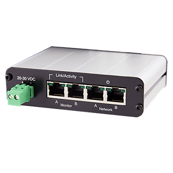 El EtherMIRROR 10/100 es un punto de medición transparente diseñado para supervisar redes industriales que operan bajo PROFINET o EtherNet/IP. Este dispositivo permite el análisis no invasivo del tráfico de red sin interrumpir la comunicación, lo que lo convierte en una herramienta ideal para entornos donde la estabilidad operativa es crítica.