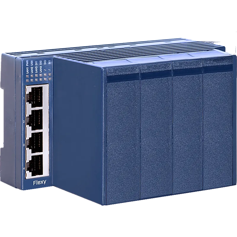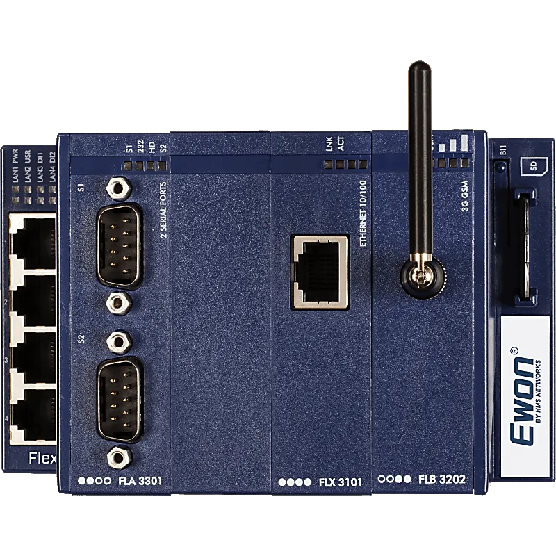 Ewon Flexy es un gateway de datos IIoT multipropósito que permite a los fabricantes y usuarios de máquinas monitorizar y recopilar KPI vitales para análisis y mantenimiento predictivo. El Ewon Flexy 201 es un gateway de Ewon basada en 4 puertos Ethernet.