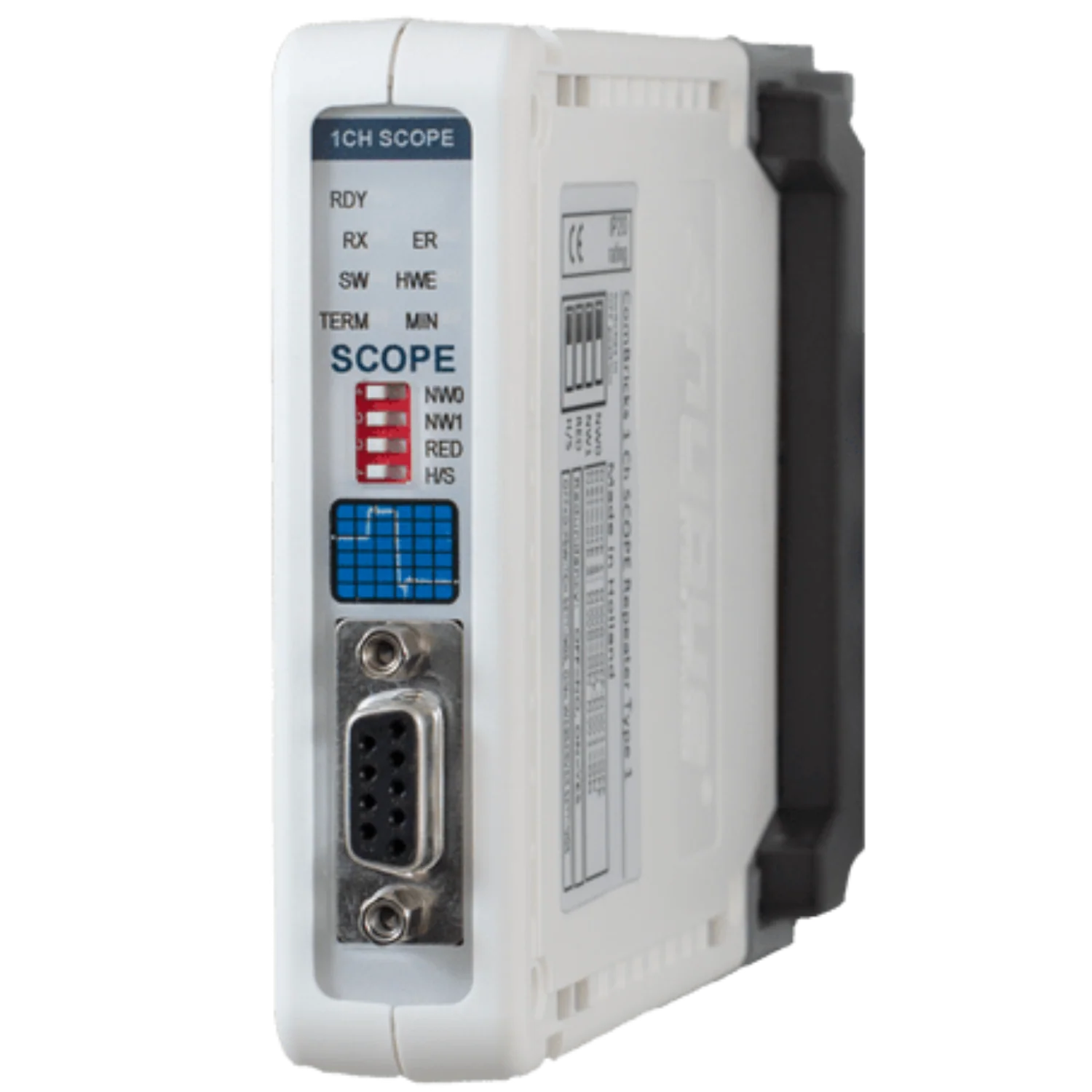 El Repetidor de 1 Canal Osciloscopio ComBricks es una solución única en el mercado que incorpora un osciloscopio de calidad industrial directamente en el módulo, permitiendo el monitoreo remoto en segmentos PROFIBUS críticos. Equipado con LEDs de diagnóstico, este repetidor ofrece conexión mediante terminales de tornillo y puerto DB9 para monitoreo local, junto con terminación de bus integrada y conmutable.